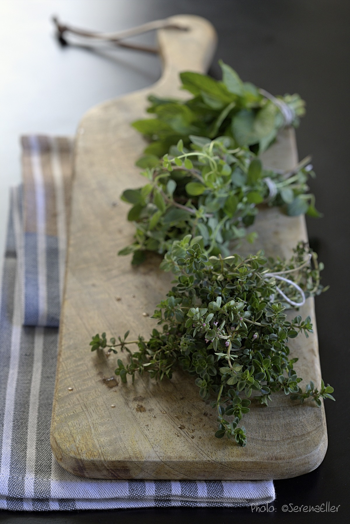 Fresh herbs on wooden board :: Sale e Pepe Magazine | Food Styling: Orsola Ciriello Kogan | Photo: ©SerenaEller