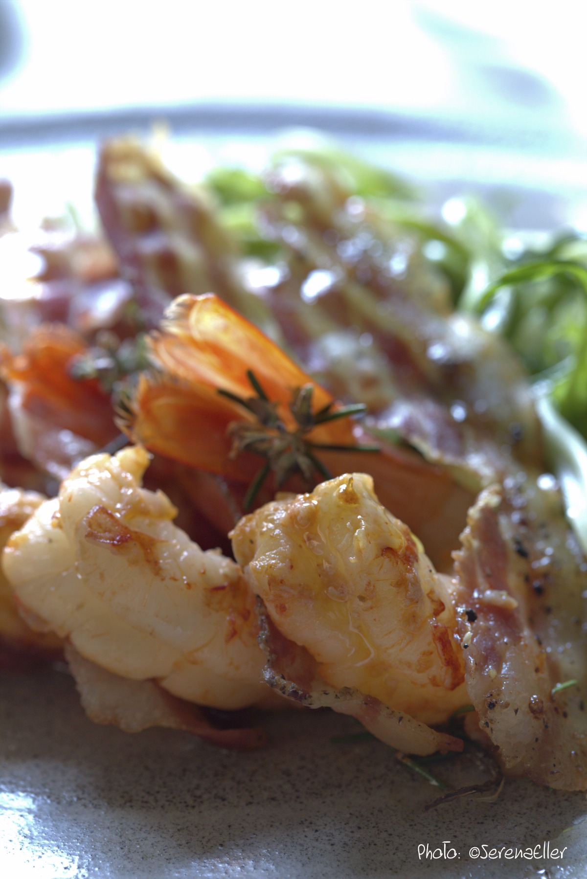 Surf & Turf :: King Prawn with Crunchy Guanciale on Salad :: Sale e Pepe Magazine | Recipe and Food Styling: Orsola Ciriello Kogan | Photo: ©SerenaEller